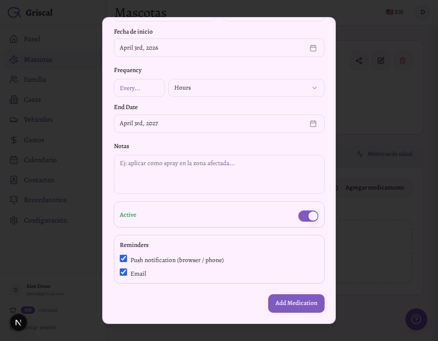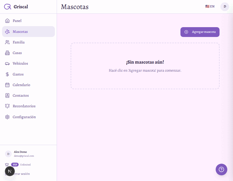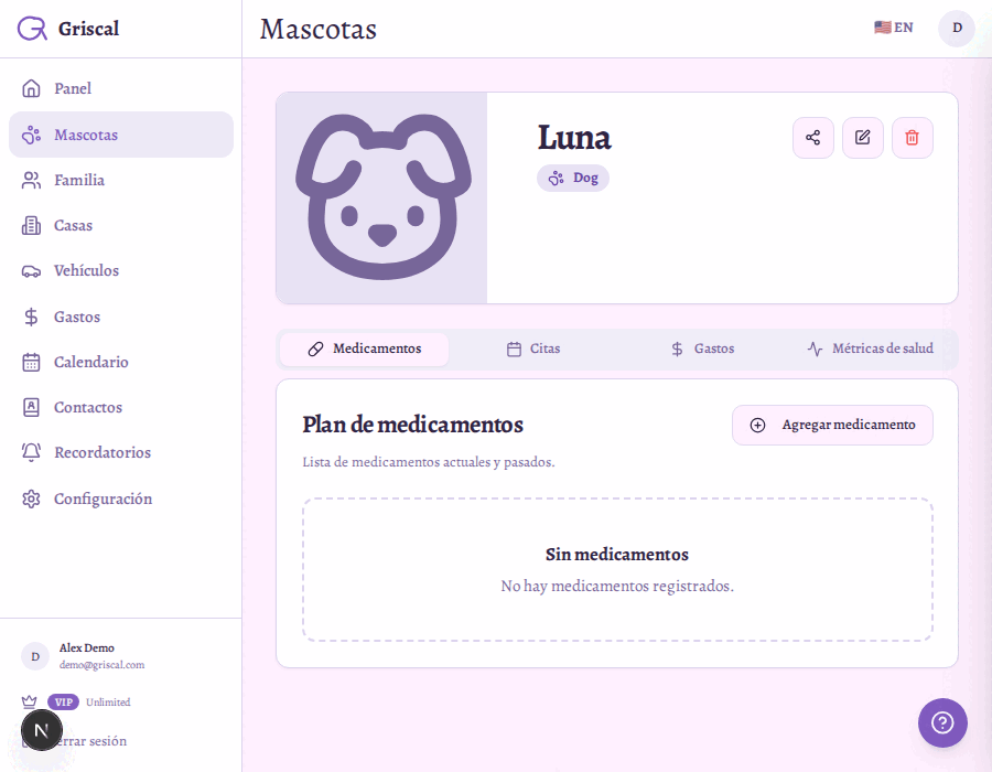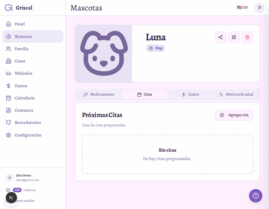 Griscal te ayuda a organizar todo en un solo lugar — para que te concentrés en tu mascota, no en el papeleo.